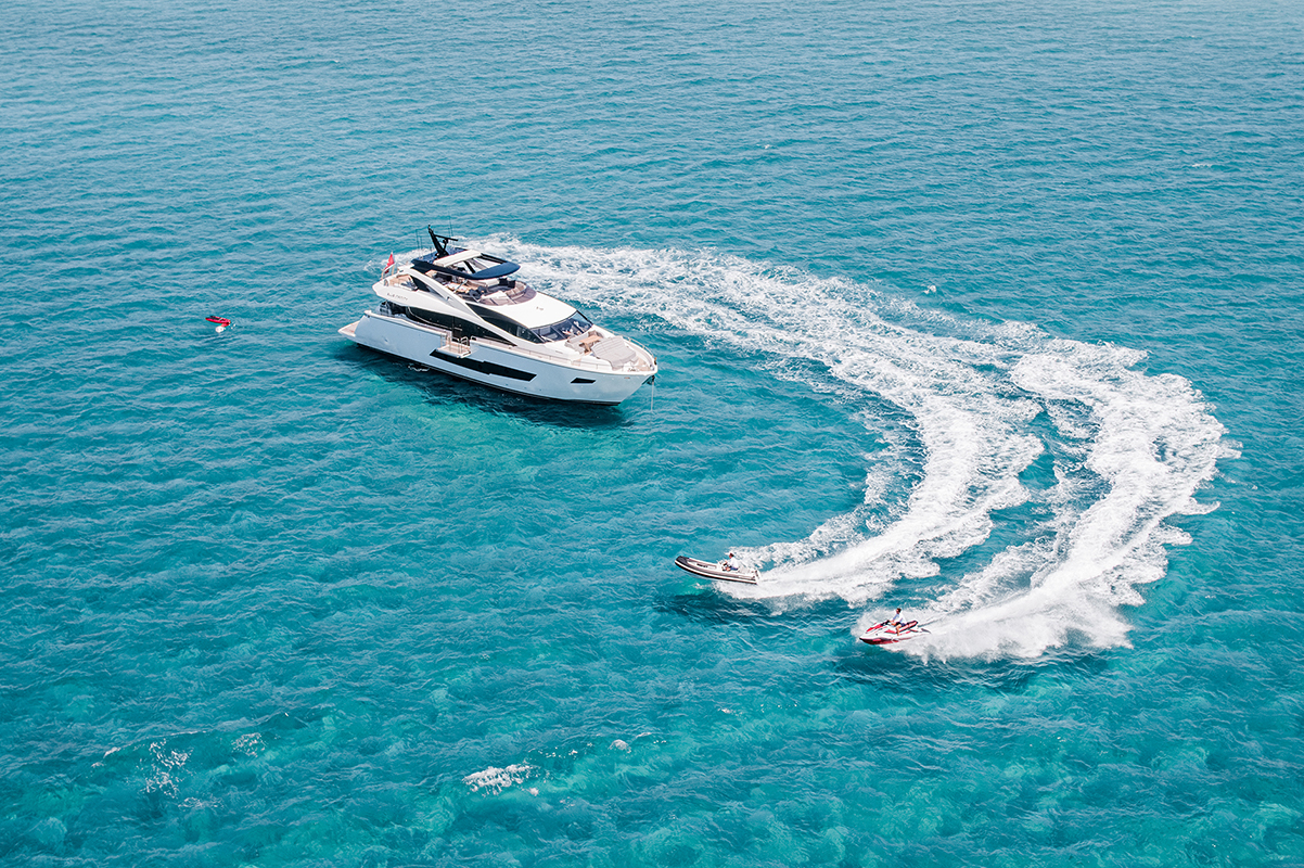 Das Meros Co-Ownership-Konzept fand mit dem europäischen Gebietsvertreter, der Sunseeker London Group, den idealen Partner – als starke, internationale Marke baut Sunseeker große Schiffe in verschiedenen Längen, in guter Qualität und mit individueller Ausstattung auf Bestellung.