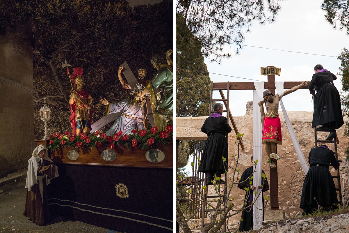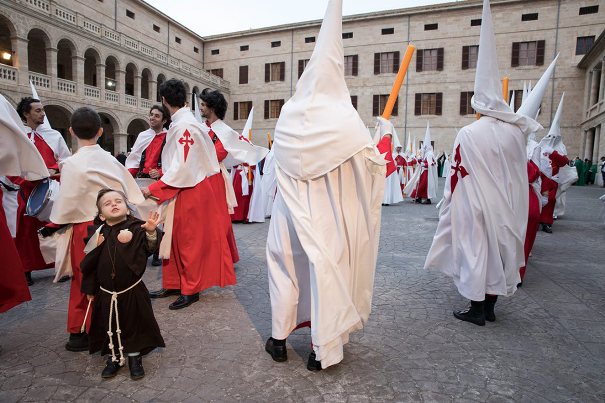 In der Osterwoche finden inselweit Prozessionen der katholischen Kirche statt, zu denen Gläubige gemeinsam mit Bruderschaften in farbigen Büßergewändern und spitzen Hüten, den capirotes, durch die Straßen ziehen. In Palma finden täglich Umzüge mit Heiligenstatuen statt, denen Trommler folgen, die den Takt der Schritte vorgeben. Der sehenswerteste ist wohl der des Santo-Cristo-de-la-Sangre-Ordens, der bereits seit 1154 abgehalten wird, und über dreißig Bruderschaften zusammenbringt. Am Karfreitag ist die Prozession in Pollença wegen ihrer besonderen Atmosphäre zu empfehlen. Die Zuschauer versammeln sich an der Calvari-Treppe, die Büßer tragen Fackeln und werden begleitet von Männern in der Uniform römischer Soldaten. Die Prozession beginnt an der Calvari-Kirche und geht die 365 Stufen hinab in den Ort. Die Veranstaltung beginnt um 21 Uhr, es ist aber ratsam, etwas früher dort zu sein, um einen Platz mit guter Sicht zu finden.